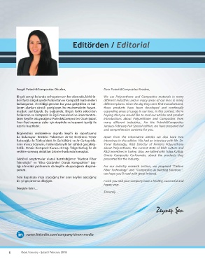 uar zel sayımızı sizler için dopdolu ve kapsamlı içeriği ile introductions about Polyurethane and Composites from